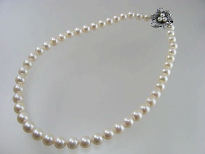 お客様が持ってこられたパールのネックレスは金具が大きめで、