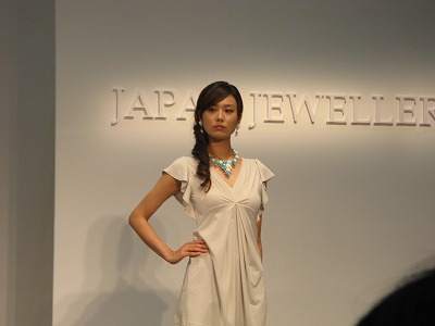ブライダルレンタルジュエリーでご紹介のジュエリーが日本ジュエリーフェアーのファッションショーで紹介された時の写真です。