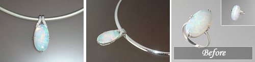 母からもらったオパールのリングです。デザインが古く、使えません。でもせっかくの記念の品ですから何とかして身に着けたいのですが。