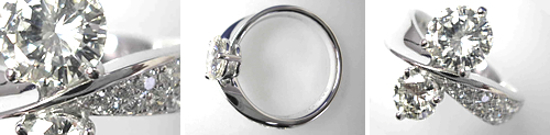 0.26cts.0.49cts.の丸ダイアを両方一緒に使用するとなると手作りの枠しかないが、弊社の枠で好評なデザインの枠を利用できるため提案した。